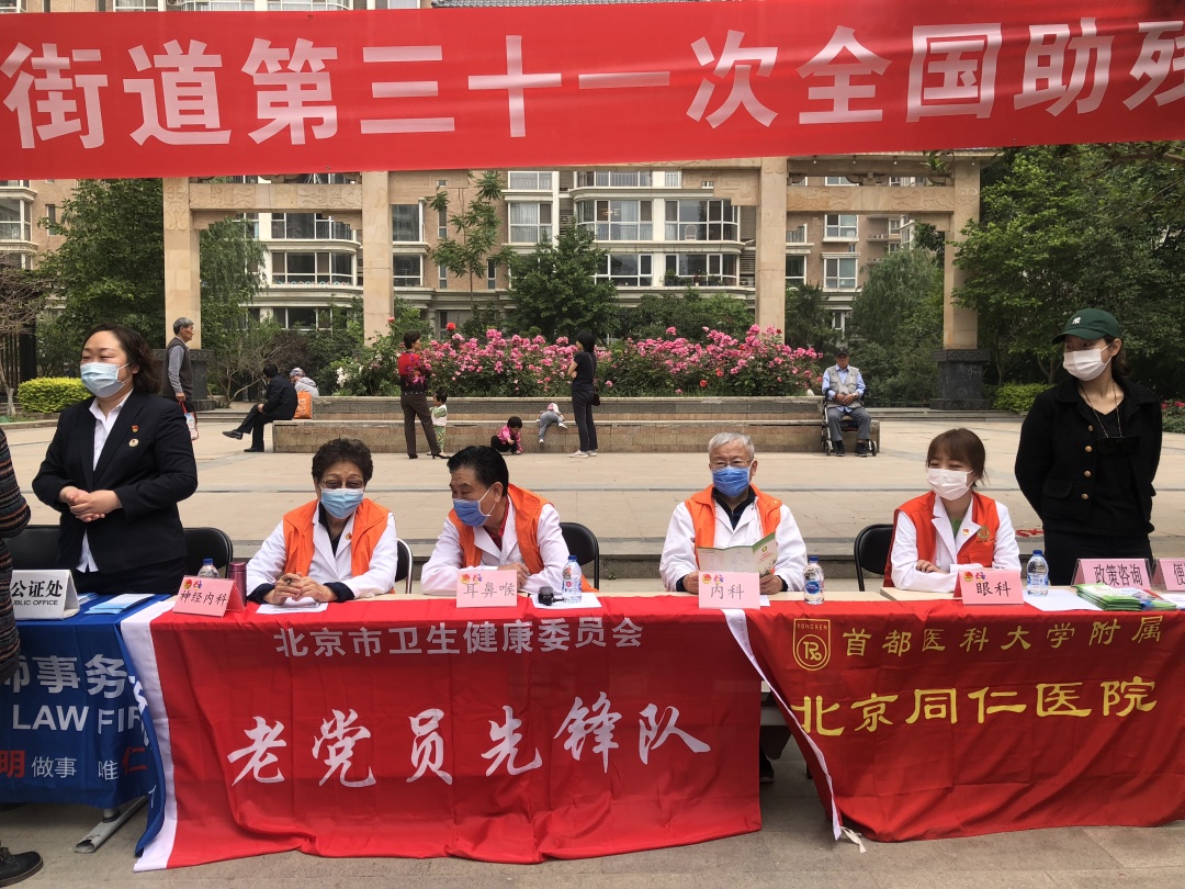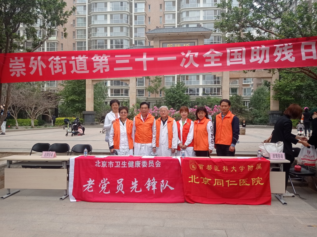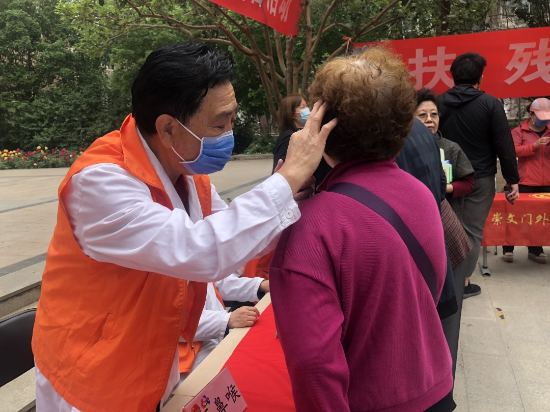 2021年,“老少携手”再出发,离退休老专家、青年医务人员助力崇外街道助残日志愿服务活动,为辖区内的居民、特别是残疾人进行健康咨询。