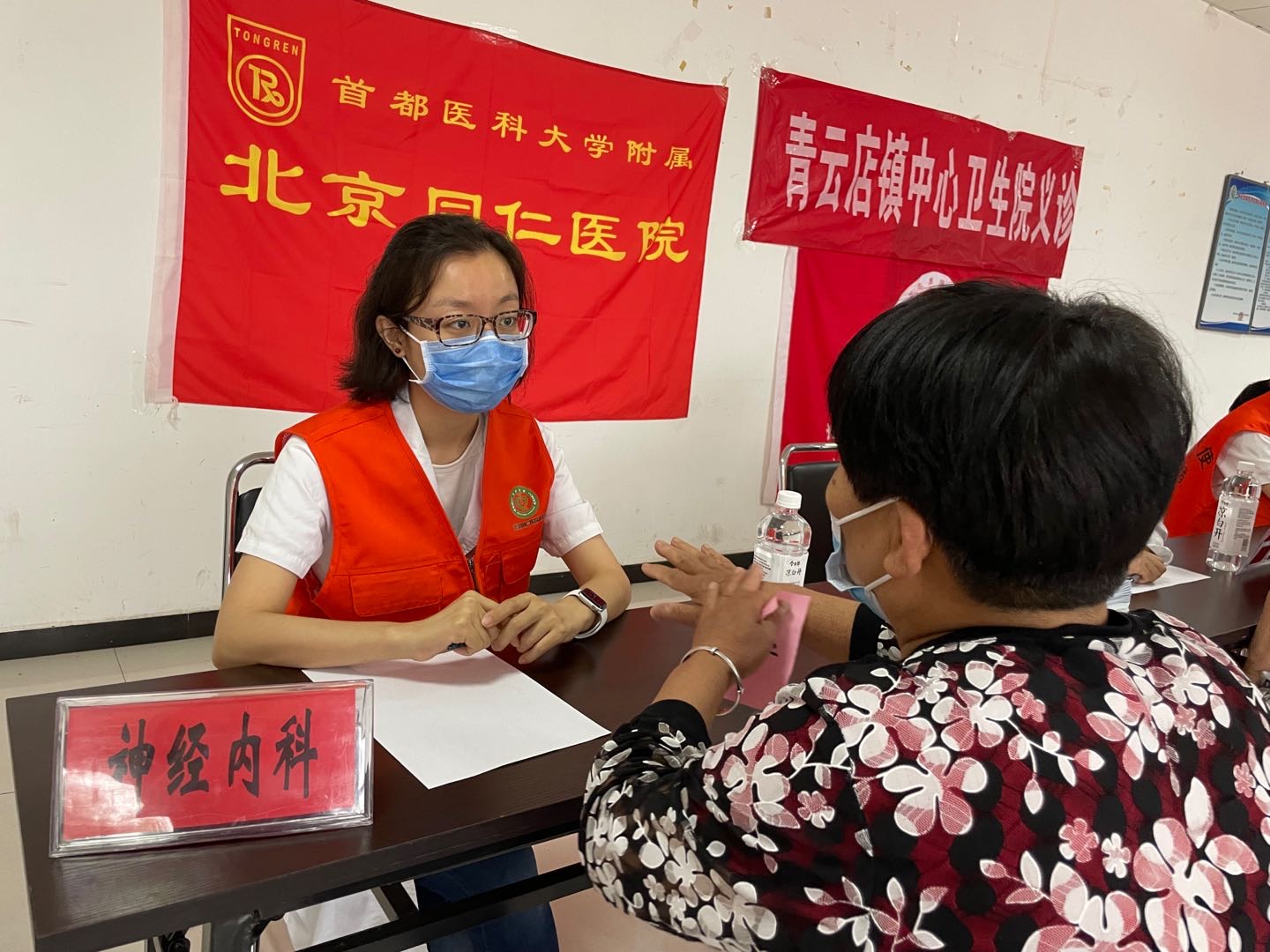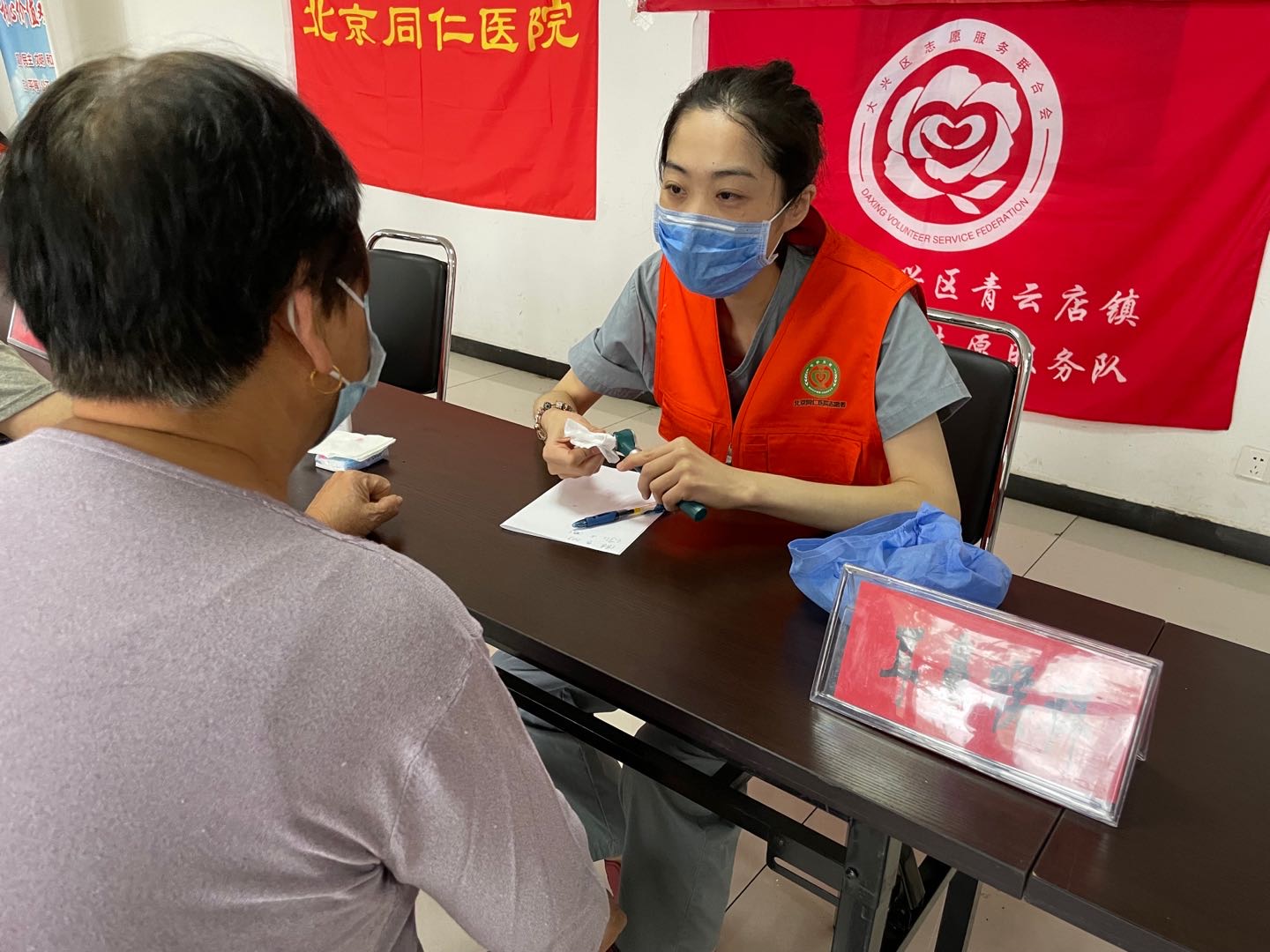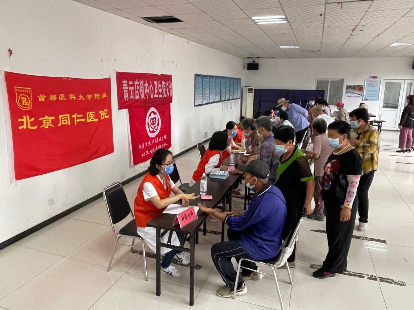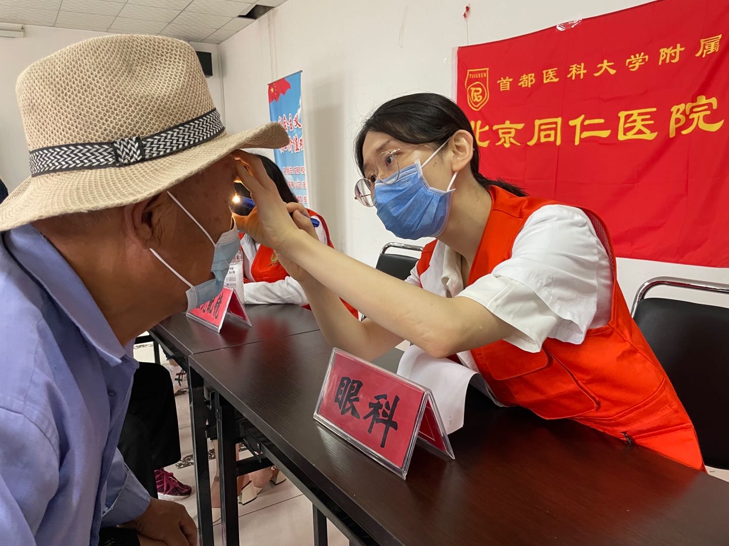 6月25日,同仁医院青年医务志愿者一行来到大兴区青云店镇曹村,为村民进行健康咨询。