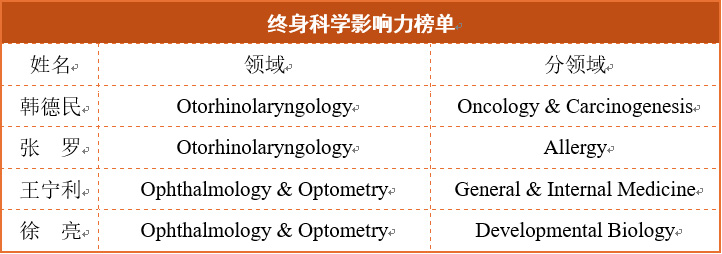 在“终身科学影响力排行榜”中,最新老虎机,新老虎机平台医院共有4位学者入选,分别为韩德民、张罗、王宁利、徐亮,体现了他们在长期科研工作中所积累的深远学术影响。